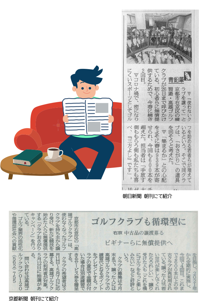 2021年9月25日(土)の朝日新聞朝刊「青鉛筆」コーナーにて、クラブおさがりキャンペーンが紹介されました。青鉛筆は世相を反映する出来事などを紹介する、100年以上続く伝統あるコーナーです。また、2023年2月9日(木)の京都新聞朝刊でも、循環型社会への取り組みとして注目していただきました。