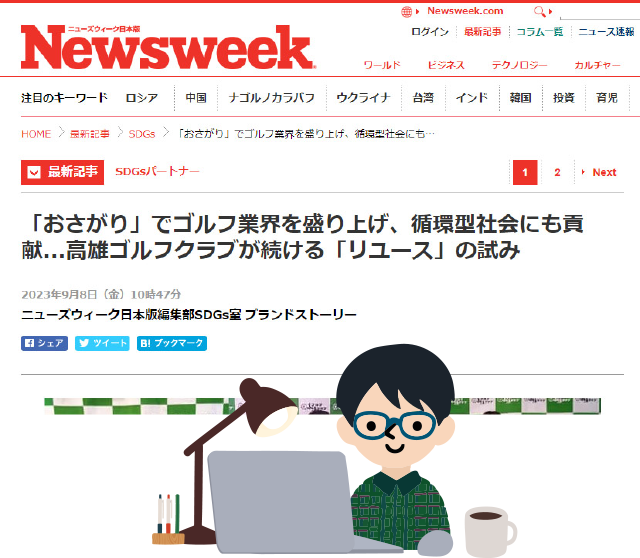 2023年9月8日(金)のニューズウィーク日本版編集部SDGs室ブランドストーリーにて、「おさがり」でゴルフ業界を盛り上げ、循環型社会にも貢献…とご紹介していただきました。