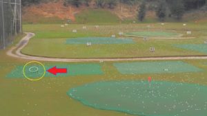 フェアウェイの前の方(40ヤード位)に置いてあるカゴです!