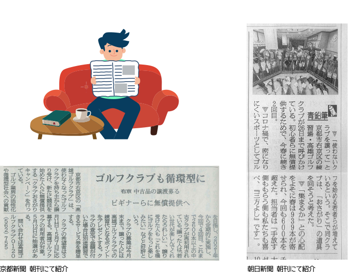 2021年9月25日(土)の朝日新聞朝刊「青鉛筆」コーナーにて、クラブおさがりキャンペーンが紹介されました。青鉛筆は世相を反映する出来事などを紹介する、100年以上続く伝統あるコーナーです。また、2023年2月9日(木)の京都新聞朝刊でも、循環型社会への取り組みとして注目していただきました。