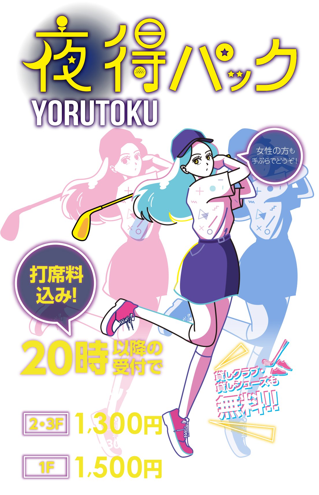 ゴルフ初心者の方の練習や、お仕事帰りの打ちっぱなしなど、ぜひお友達とご一緒にお越しください!